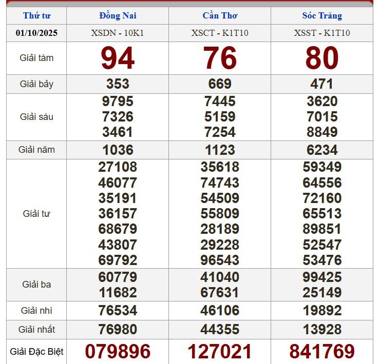 Kết quả xổ số miền Nam (XSMN) hôm nay ngày 1/10