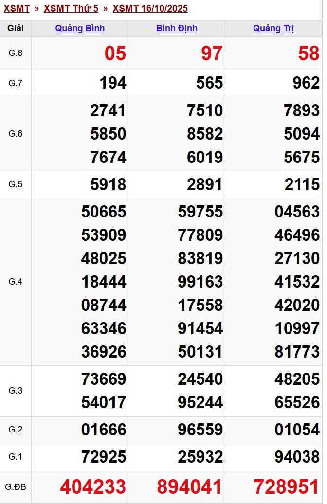 XSMT 16/10/2025 - Kết quả xổ số miền Trung hôm nay 16/10/2025