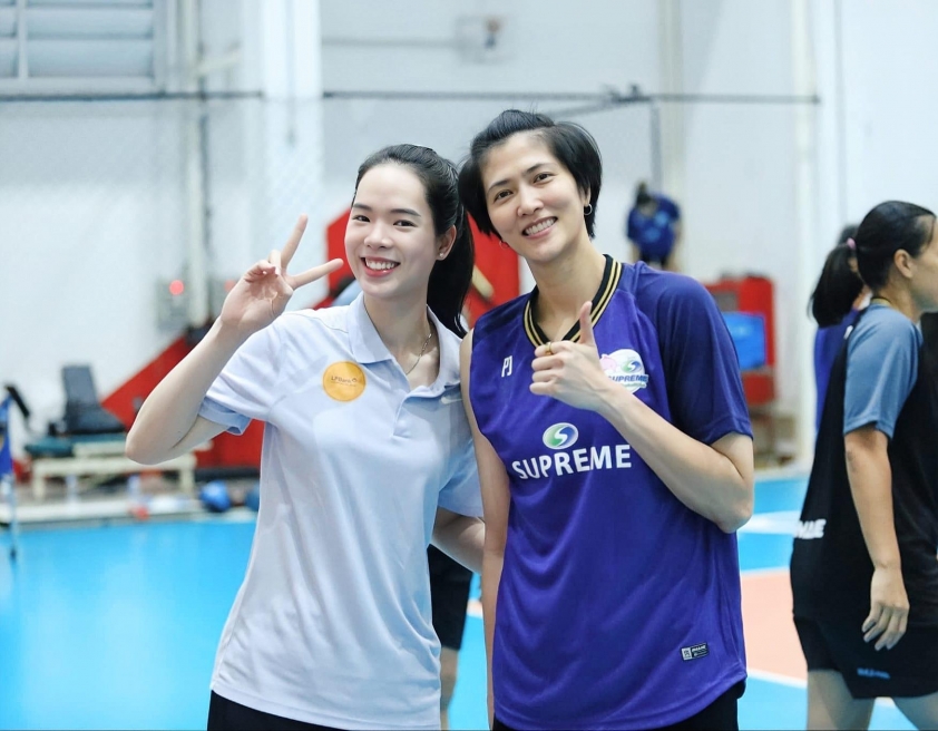 Tại đây, ngôi sao hàng đầu của Ninh Bình - tuyển thủ quốc gia Lê Thanh Thúy đã có dịp chụp ảnh, giao lưu cùng phụ công huyền thoại của bóng chuyền nữ Thái Lan - Pleumjit Thinkaow.