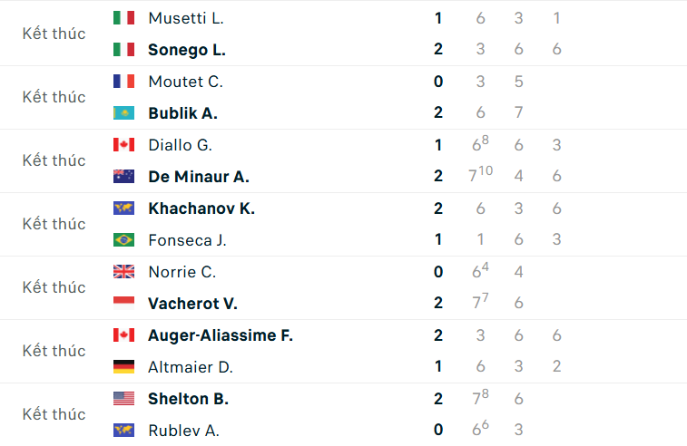 (Kết quả tennis hôm nay) - Thất bại của Lorenzo Musetti cùng chiến thắng trước Andrey Rublev ngày hôm nay giúp Ben Shelton giành quyền dự ATP Finals 2025.