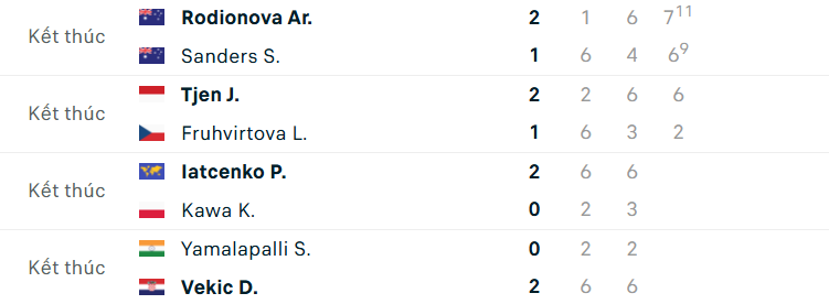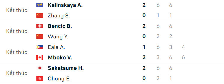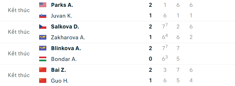 Kết quả WTA Cửu Giang - Vòng 1/8