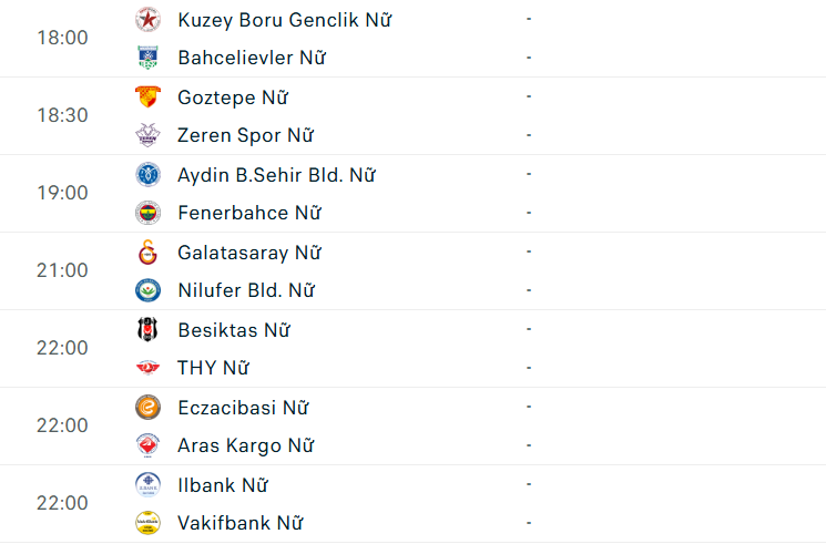 Lịch thi đấu giải VĐQG nữ Thổ Nhĩ Kỳ