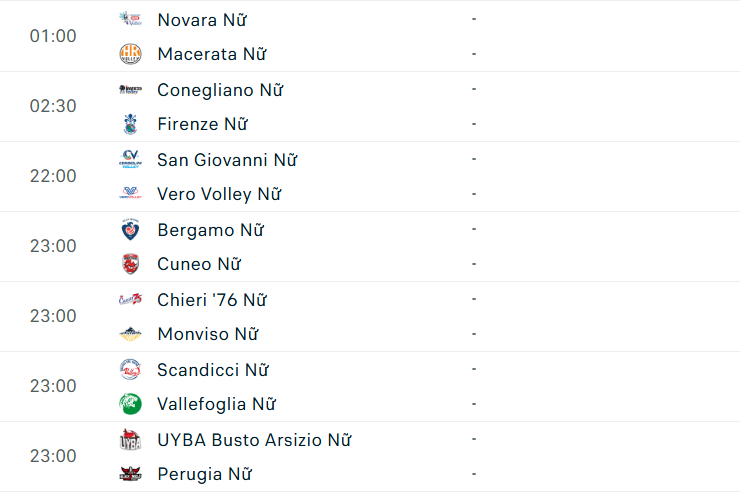 Lịch thi đấu giải VĐQG nữ Ý