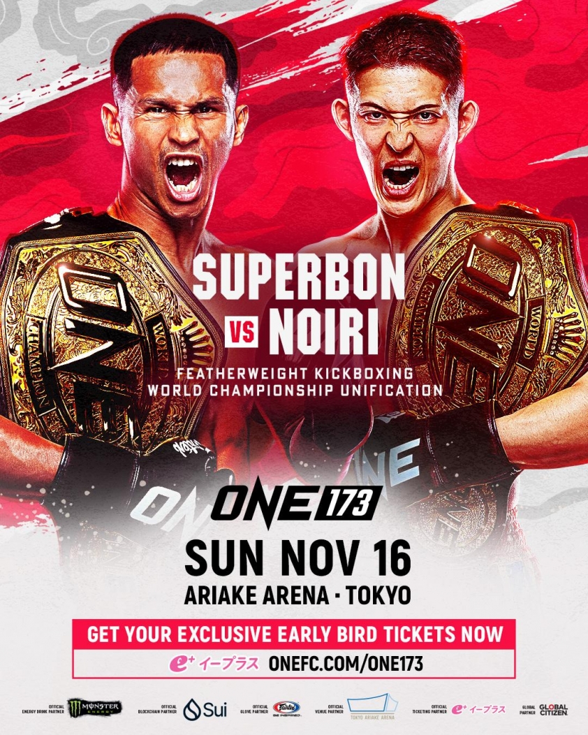 ONE 173, sự kiện lớn nhất năm 2025 của ONE Championship sẽ được tổ chức tại Ariake Arena, Tokyo, Nhật Bản vào ngày 16/11 tới đây. Sự kiện quy tụ đông đảo những võ sĩ đáng chú ý bậc nhất ONE hiện tại: Rodtang Jitmuangnon, Superbon, Masaaki Noiri, Takeru Segawa, Denis Puric, Nabil Anane, v.v. với tổng cộng 17 cặp đấu - bữa tiệc thịnh soạn cho người hâm mộ võ thuật trên toàn thế giới.