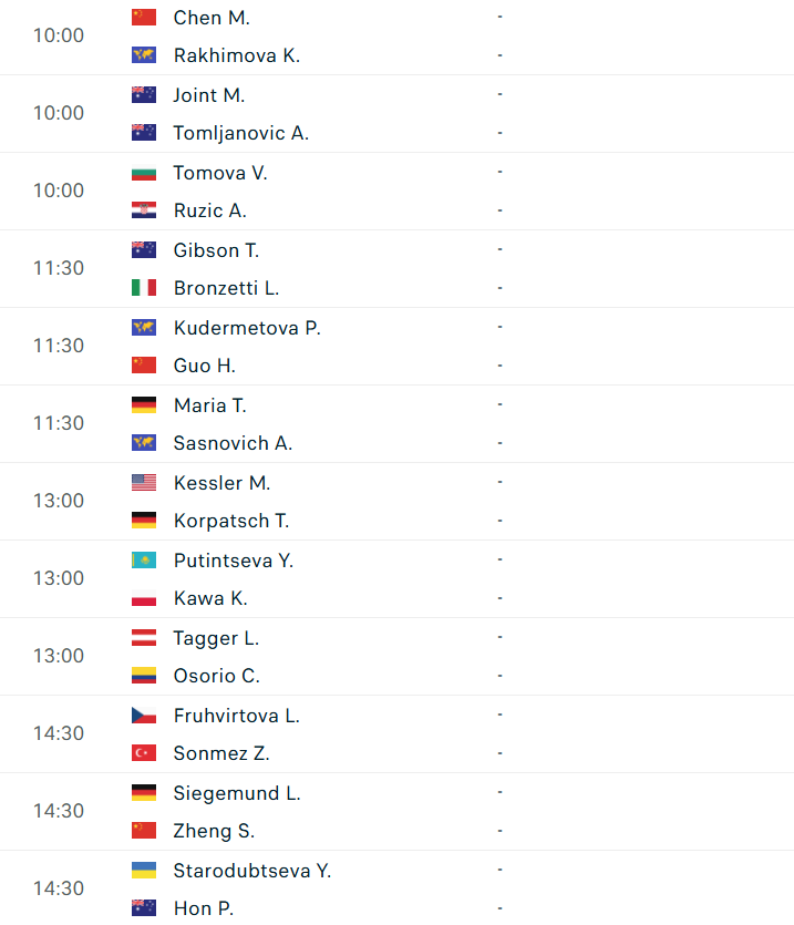 Lịch thi đấu WTA Ninh Ba - Vòng loại