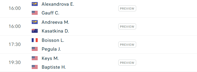 Ở nội dung nữ, Coco Gauff hứa hẹn sẽ phải vất vả trước Ekaterina Alexandrova - tay vợt trả giao xuất sắc. "Tiểu Sharapova" Mirra Andreeva chạm trán "cựu đồng hương" Daria Kasatkina - người mới chuyển quốc tịch từ Nga sang Úc trong năm nay, tái hiện lại trận chung kết Ninh Ba mở rộng năm ngoái.