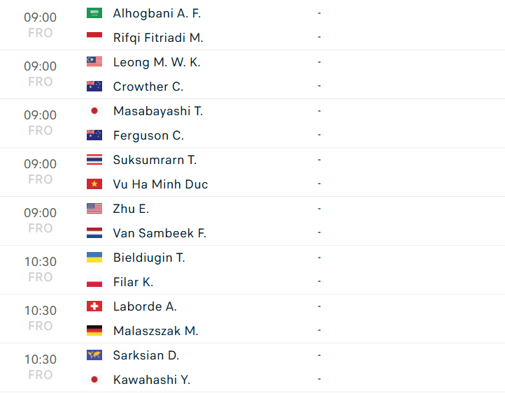 Lịch thi đấu ITF M15 Kuala Lumpur - Vòng 1/8