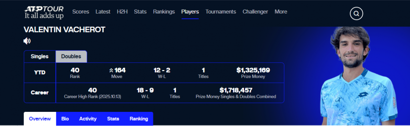 Chức vô địch Shanghai Masters 2025 của Valentin Vacherot đã trở thành niềm cảm hứng lớn lao cho các tay vợt có thứ hạng thấp không ngừng cố gắng, phấn đấu để có được bước tiến lớn trong sự nghiệp. Từ thắng lợi trước Hoàng Nam để giành danh hiệu Challenger Tour đầu tiên trong sự nghiệp đến cúp vô địch danh giá ở Thượng Hải, Vacherot đã khiến tất cả phải ngước nhìn với nỗ lực không biết mệt mỏi của mình.