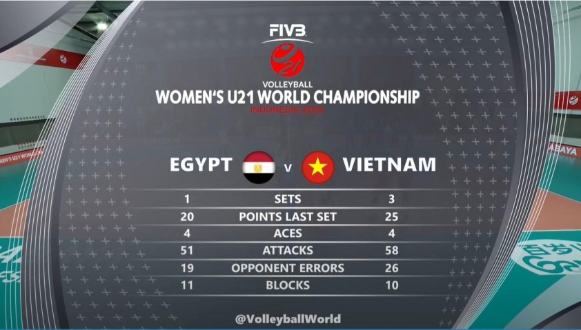 Thất bại 22-25 ở set 3 giúp Ai Cập rút ngắn tỷ số xuống 1-2, giữ hy vọng lội ngược dòng, trong khi Việt Nam vẫn nắm lợi thế sau hai set thắng đầu tiên.