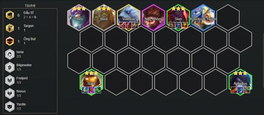 - Thứ tự ưu tiên trang bị: Bard >>> Aphelios >>> Sion