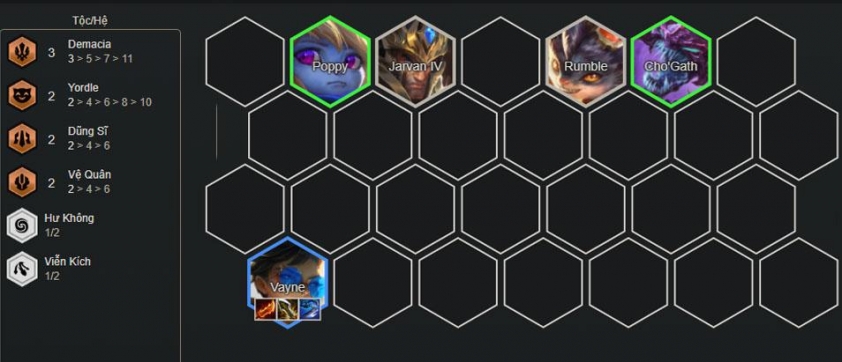 - Nên đặt Jarvan IV ở cùng phía với Vayne để gia tăng tốc độ đánh của đơn vị này lên tối đa