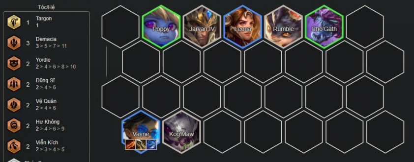 - Sau khi mở khóa Poppy, thêm Rumble và Cho'Gath để giúp hàng trước lì lợm hơn