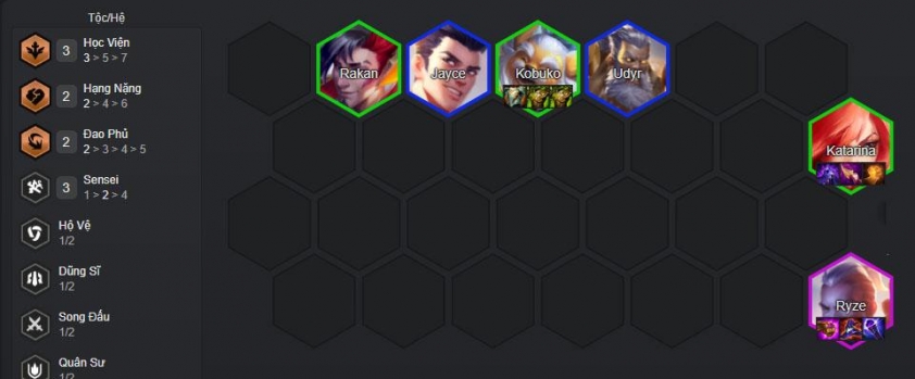 - Sau khi lên cấp 8, bổ sung Janna và Akali để kích hoạt mốc 2 Quân Sư và 3 Đao Phủ