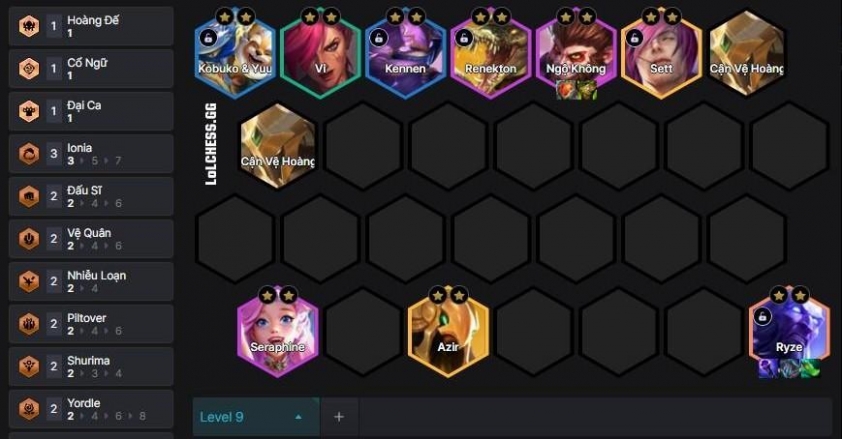 • Lên cấp đều đặn tới cấp độ 9 và bắt đầu reroll tìm kiếm Azir