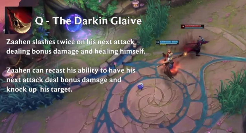 - Khi đạt đủ mức cộng dồn, Zaahen sẽ nhận thêm buff sát thương và có khả năng hồi sinh sau khi bị hạ gục.