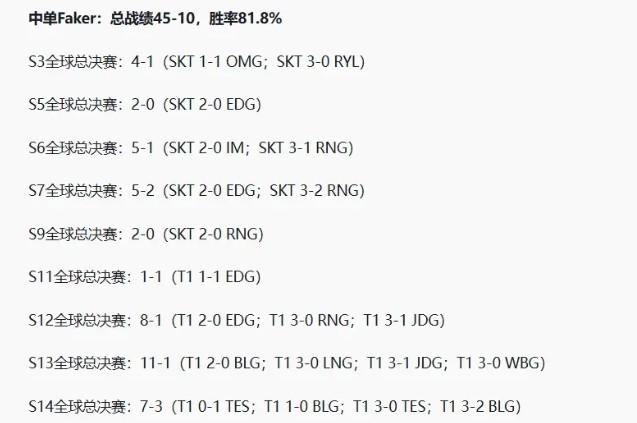 Nhưng đáng chú ý nhất chính là Faker. Tính đến nay, “Quỷ Vương” đã đối đầu với các đội LPL tổng cộng 55 trận, trong đó thắng tới 45 trận, đạt tỷ lệ 81,8% – một con số gần như không tưởng ở cấp độ quốc tế. Có thể nói, Faker đã “đánh sập” LPL trong suốt nhiều năm, đặc biệt ở hai mùa CKTG 2023 và 2024, nơi T1 liên tiếp loại bỏ đại diện Trung Quốc và giành vinh quang cho LCK.