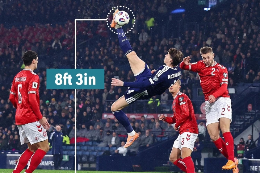 Một người dùng mạng xã hội X có tên David Rudnick đã tiến hành đo đạc thô sơ dựa trên bức ảnh ghi lại khoảnh khắc McTominay đá bóng. Sử dụng quả bóng Adidas tiêu chuẩn có đường kính 22cm làm đơn vị đo, người này đã tính toán cầu thủ Scotland đã tiếp xúc bóng ở độ cao khoảng 2,53 mét, cao hơn Ronaldo 15 cm.