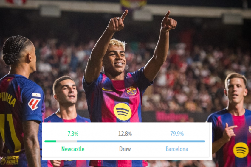 Theo dự đoán của chuyên trang BeSoccer, Barcelona đang nắm lợi thế lớn trong trận đấu với Newcastle khi sở hữu tỷ lệ thắng vượt trội.