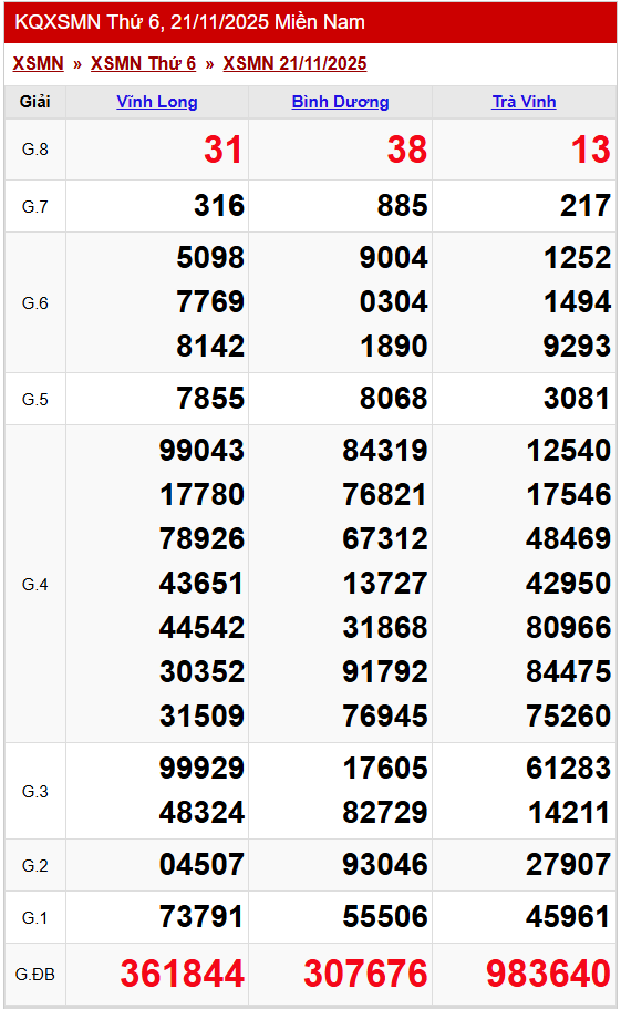 XSMN 21/11/2025 - Kết quả xổ số miền Nam hôm nay 21/11/2025