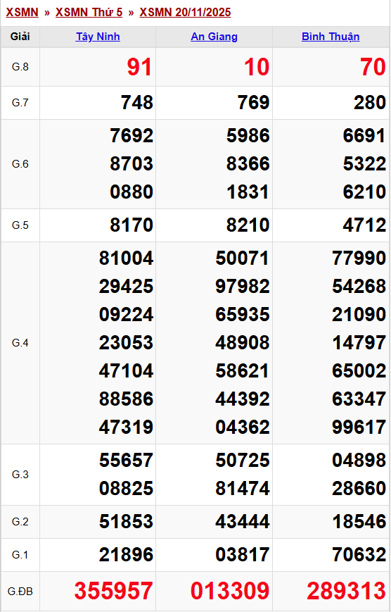 Kết quả xổ số miền Nam (XSMN) hôm nay ngày 20/11