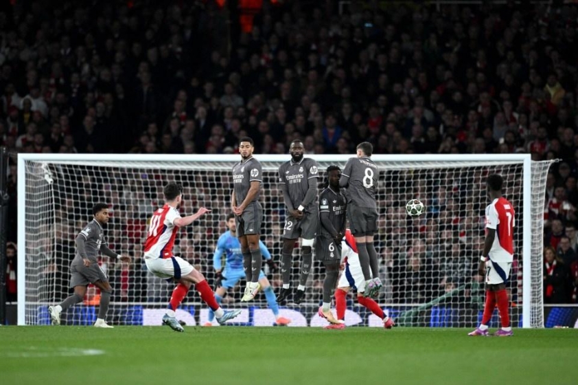 Ở lễ trao giải năm nay, Declan Rice, một tiền vệ vốn nổi tiếng vì khả năng thu hồi bóng và tổ chức lối chơi, lại gây bão nhờ vào một cú đá phạt mẫu mực trước Real Madrid. Từ khoảng cách hơn 25 mét, bóng rời chân Rice theo quỹ đạo hoàn hảo, găm thẳng vào góc cao trong sự bất lực hoàn toàn của thủ thành đối phương. Đó không chỉ là bàn thắng đẹp, mà còn mang ý nghĩa quan trọng giúp Arsenal thắng 3-0 ở tứ kết Champions League.