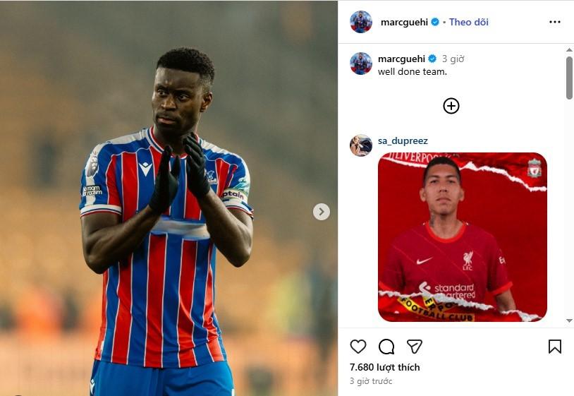 Marc Guehi đăng dòng thông điệp ngắn gọn kèm những bức ảnh thi đấu, một lời khen tinh tế dành cho tập thể Palace giữa thời điểm anh đang được hàng loạt ông lớn theo dõi sát sao.