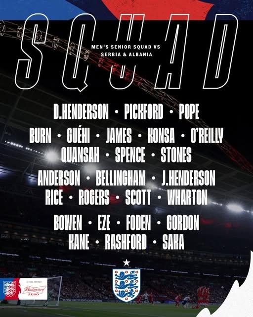 Ở chiều ngược lại, Phil Foden (Man City) và Jude Bellingham (Real Madrid) đã trở lại đội hình sau khi vắng mặt ở đợt tập trung tháng trước. Cả hai được kỳ vọng sẽ mang lại sự sáng tạo và năng lượng mới cho hàng công “Tam sư”.