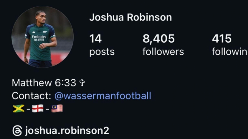 Cộng đồng người hâm mộ bóng đá Malaysia đang xôn xao trước thông tin Joshua Robinson, cựu cầu thủ trẻ của Arsenal, bất ngờ đặt ba lá cờ Jamaica, Anh và Malaysia trong phần giới thiệu trên trang cá nhân Instagram. Hành động nhỏ nhưng đầy ý nghĩa này nhanh chóng thu hút sự chú ý, bởi nó như một cách Robinson khẳng định nguồn gốc đa sắc tộc của mình, trong đó có dòng máu Malaysia từ người mẹ.