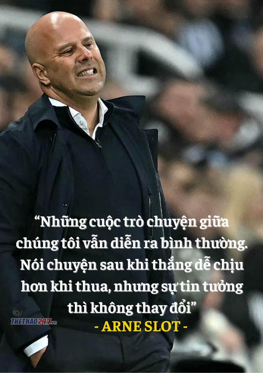 Chia sẻ trước truyền thông, Slot cho biết ông vẫn cảm nhận rõ sự hậu thuẫn từ ban lãnh đạo CLB: “Những cuộc trò chuyện giữa chúng tôi vẫn diễn ra bình thường. Họ nói những điều tương tự như trước đây, và họ nhìn thấy những gì tôi thấy. Tất nhiên, nói chuyện sau khi thắng sẽ dễ chịu hơn sau khi thua, nhưng sự tin tưởng thì không thay đổi,” chiến lược gia 46 tuổi nói.