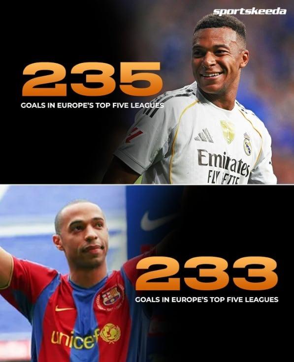 Với 235 bàn sau 291 trận, Mbappe chính thức vượt mốc 233 bàn mà Henry từng thiết lập sau 459 lần ra sân. Thành tích này càng trở nên ấn tượng khi tiền đạo 26 tuổi vẫn đang ở đỉnh cao phong độ và còn nhiều năm thi đấu phía trước.