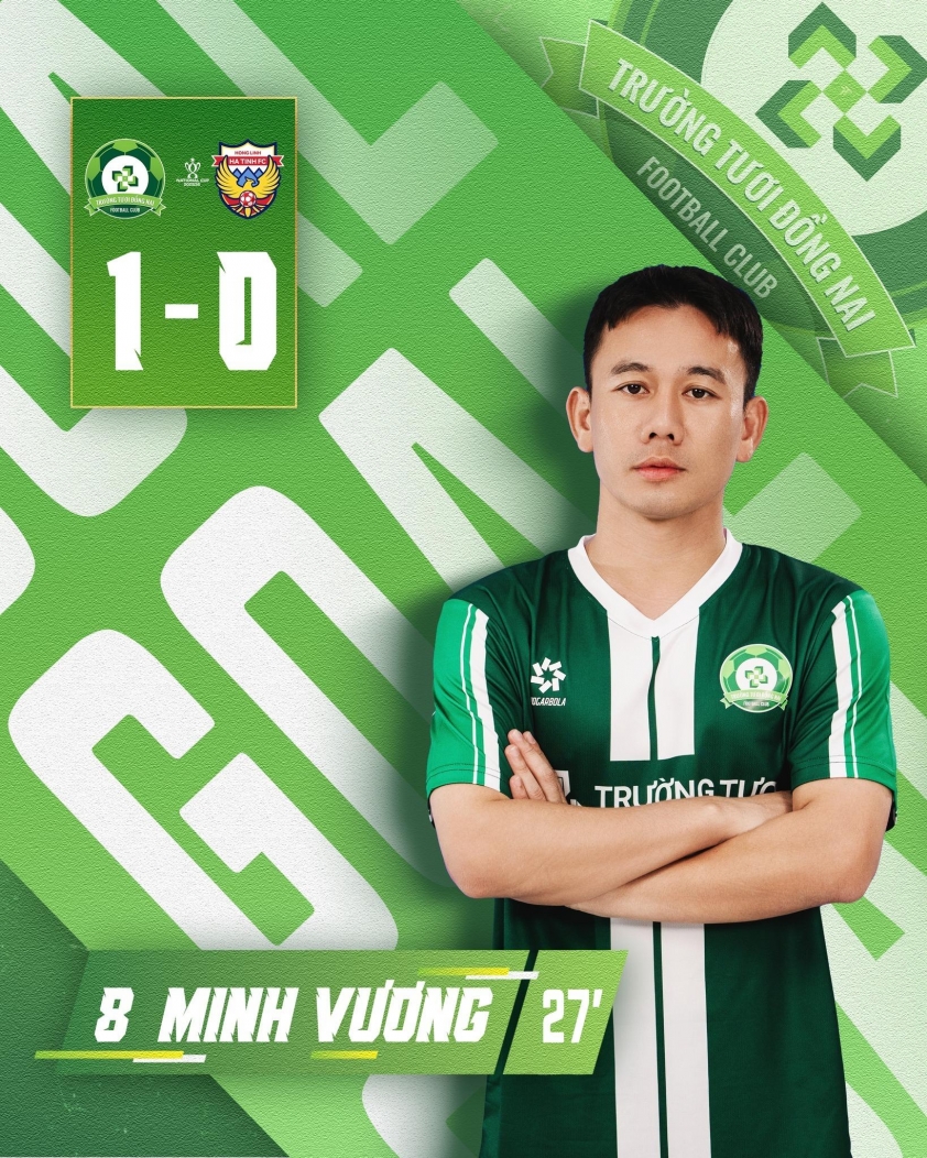 Đồng Nai có pha phối hợp bên cánh phải và Xuân Trường có pha cố gắng đưa vào trong cho Minh Vương, nhưng dù cho bị tới 2 cầu thủ Hà Tĩnh theo kèm nhưng Minh Vương vẫn dứt điểm tinh tế mở tỷ số cho Đồng Nai.