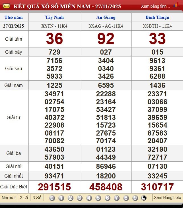 Kết quả xổ số miền Nam (XSMN) hôm qua ngày 27/11