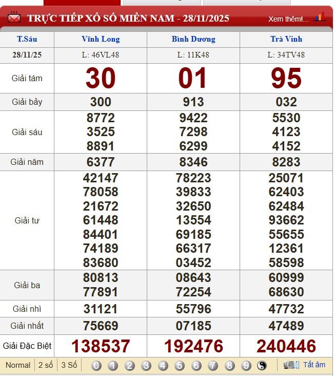 Kết quả xổ số miền Nam (XSMN) hôm nay ngày 28/11