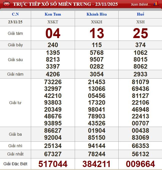 XSMT 20/11/2025 - Kết quả xổ số miền Trung hôm nay 23/11/2025