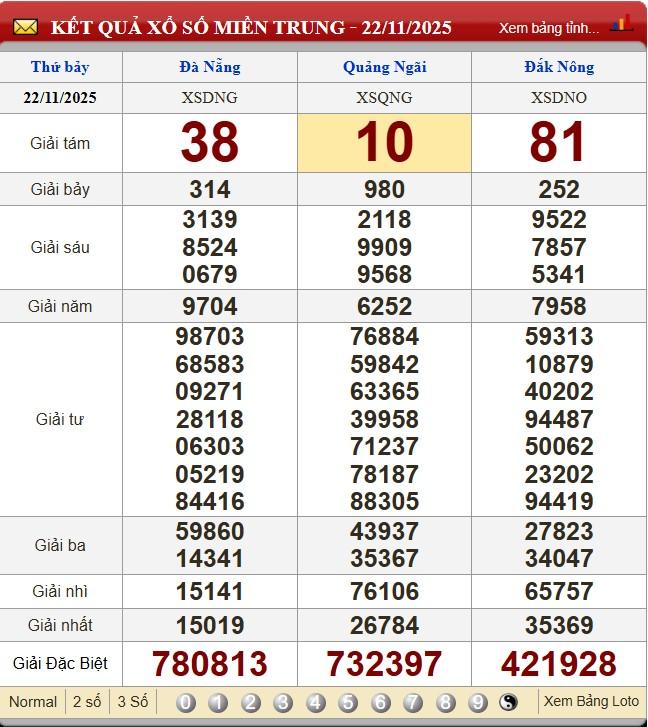 Kết quả xổ số miền Trung (XSMT) hôm qua ngày 22/11
