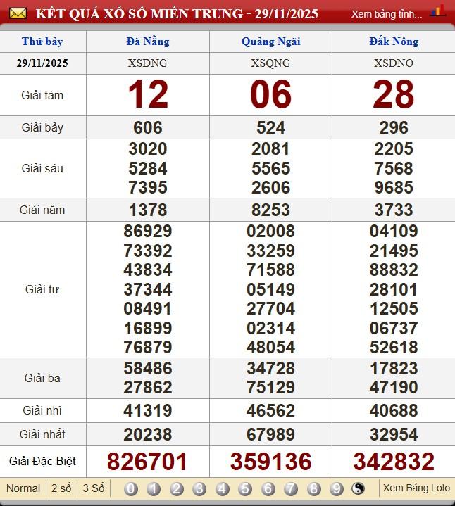 Kết quả xổ số miền Trung (XSMT) hôm qua ngày 29/11