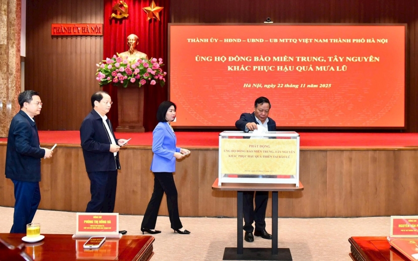 Phát biểu phát động hướng ứng, Chủ tịch Ủy ban MTTQ Việt Nam thành phố Hà Nội Bùi Huyền Mai cho biết, trong những ngày qua, trước tình hình mưa lũ đặc biệt lớn, nghiêm trọng tại các tỉnh miền Trung và Tây Nguyên, đồng chí Bùi Thị Minh Hoài, Ủy viên Bộ Chính trị, Bí thư Trung ương Đảng, Chủ tịch Ủy ban Trung ương MTTQ Việt Nam đã có Lời kêu gọi toàn dân ủng hộ đồng bào bị thiệt hại do mưa lũ lịch sử gây ra.