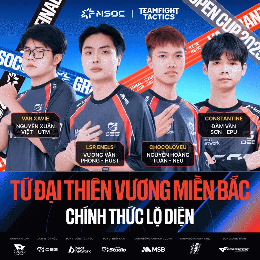 Chính thức được ấn định tổ chức vào ngày 06/12 tới đây tại OEG Stadium - nơi được mệnh danh là tổ hợp eSports hiện đại bậc nhất Việt Nam, vòng Chung kết Quốc gia NSOC 2025 hứa hẹn sẽ diễn ra cuộc chiến khốc liệt giữa các "chiến binh” sinh viên tài năng nhất ở hai bộ môn Valorant và Đấu Trường Chân Lý (TFT).
