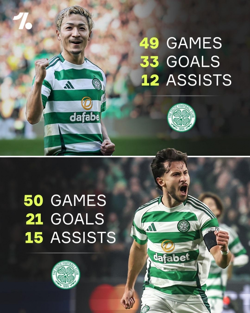 Ngôi sao 28 tuổi đã tỏa sáng rực rỡ ở mùa giải trước với 33 bàn thắng và 12 pha kiến tạo trên mọi đấu trường. Kể từ khi rời Yokohama F. Marinos để gia nhập Celtic năm 2022, Maeda nhanh chóng trở thành biểu tượng nhờ tốc độ, lối chơi pressing mạnh mẽ và khả năng dứt điểm chính xác. Anh góp công lớn giúp đội bóng giành cú đúp quốc nội, trở thành một trong những cầu thủ được yêu mến nhất tại Parkhead.