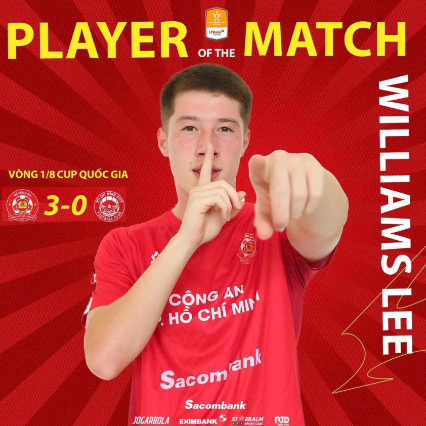Tiền đạo Việt kiều Anh Lee Williams vừa lập cột mốc lịch sử khi trở thành cầu thủ đầu tiên mang hai dòng máu Việt – Anh ghi bàn ở cả V-League và Cúp Quốc gia. Trong trận vòng 1/8 Cúp Quốc gia 2025/26, thi đấu trọn 90 phút, ghi 1 bàn và tham gia nhiều tình huống tranh chấp, gây áp lực cũng như phối hợp ăn ý với đồng đội, Williams được bình chọn là cầu thủ xuất sắc nhất trận, góp công lớn giúp CLB Công an TP.HCM thắng 3-0 CLB TP.HCM.