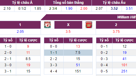 Tỷ lệ kèo trận đấu giữa Liverpool vs Arsenal, 00h30 ngày 5/3