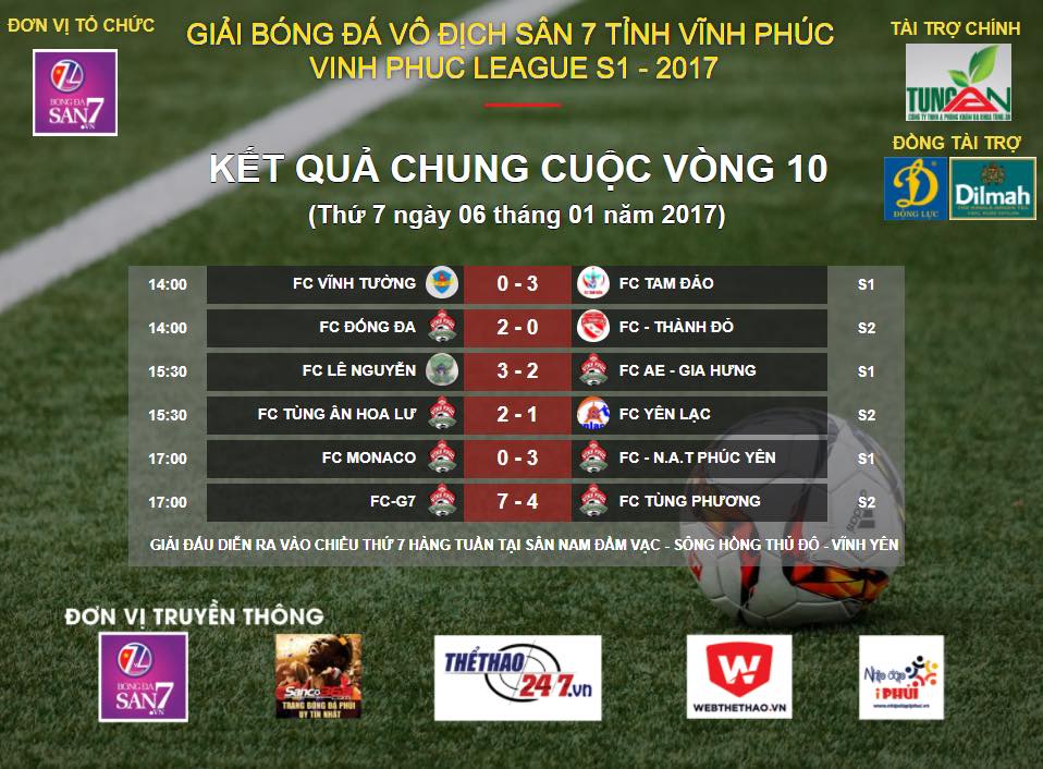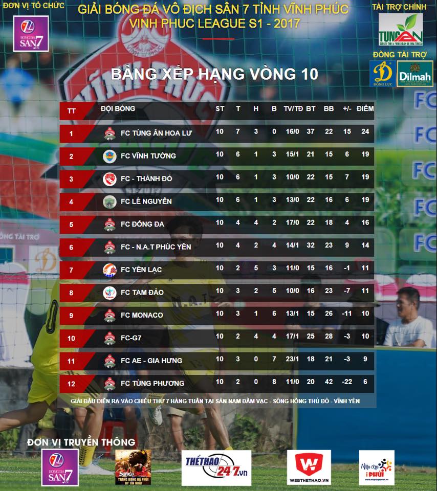 Kết quả, bảng xếp hạng vòng 10 Vĩnh Phúc League 2017
