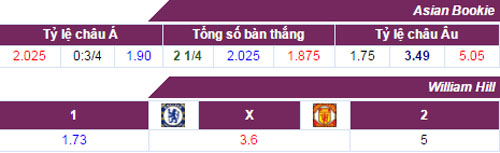 Tỉ lệ kèo châu Á trận Chelsea vs MU