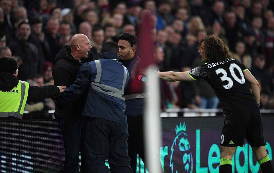 Các cầu thủ Chelsea đã bị đe dọa bởi một CĐV quá khích của đội chủ nhà West Ham, rất may nhân viên an ninh đã kịp thời ngăn cản.