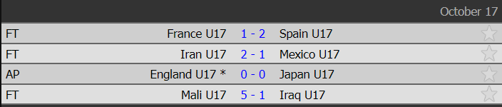 Thể Thao 247 - Pháp đấu Tây Ban Nha và Anh đọ sức Nhật là hai trận đấu diễn ra căng thẳng và quyết liệt nhất ở vòng 1/8 U17 World Cup mới kết thúc.