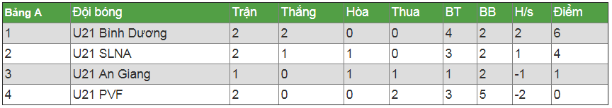 | U21 HAGL | 2 | 2 | 0 | 0 | 5 | 1 | 4 | 6 |