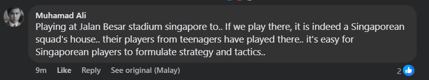 "Thi đấu ở sân Jalan Besar. Các cầu thủ Singapore đã thi đấu ở đây từ khi còn trẻ, rất dễ để họ xây dựng chiến thuật thi đấu ở đây", một CĐV Malaysia cũng có chung quan điểm.