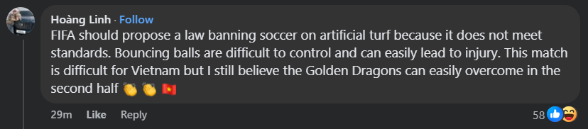 Trong khi đó, đa số CĐV Việt Nam đều cho rằng việc thi đấu trên sân cỏ nhân tạo đã khiến ĐT Việt Nam gặp không ít khó khăn: