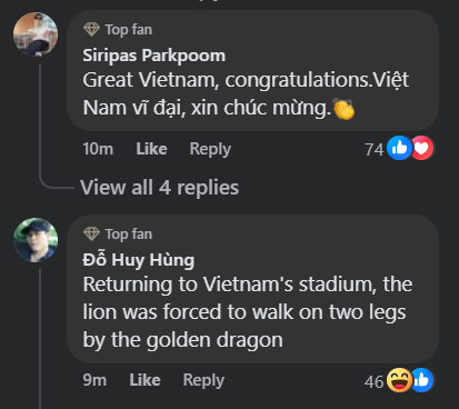 Sau trận, CĐV Đông Nam Á có màn tranh luận cực sôi nổi trên các trang mạng xã hội. Nhiều NHM trong khu vực đã gửi lời chúc mừng đến ĐT Việt Nam sau màn trình diễn nghẹt thở ở những phút thi đấu cuối cùng.