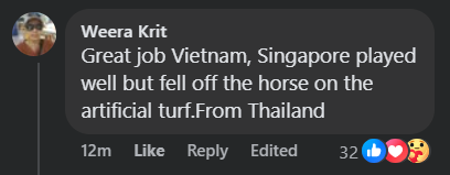 "Quá tuyệt vời Việt Nam. Singapore đã chơi tốt nhưng lại gục ngã trên chính sân cỏ nhân tạo của mình".